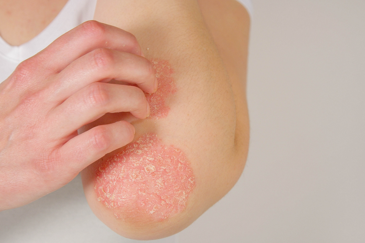 Psoriasis is a chronic autoimmune disease that causes skin cells to multiply up to 10 times faster than normal, resulting in raised, red patches covered with silvery-white scales. It’s not contagious and can’t be caught from touching someone who has it.